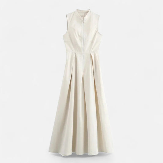 Ancient World | Fitted Pleated Midi Dress for Women – Sleeveless Summer Elegance with Zipper Closure