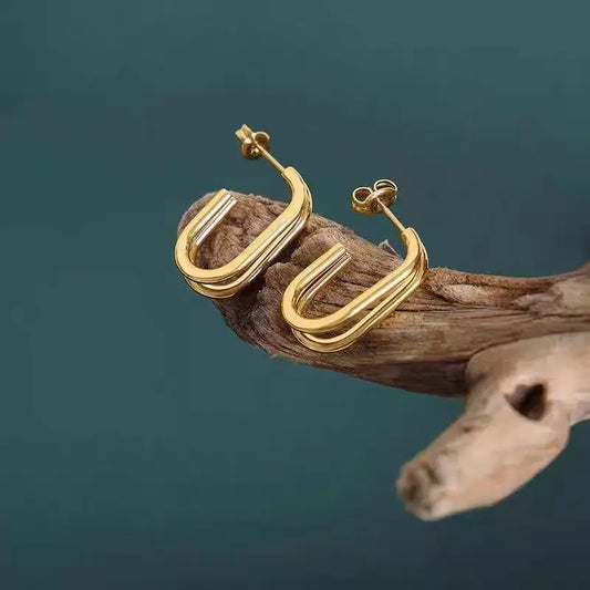 Stainless steel earrings in J-shape with two layers