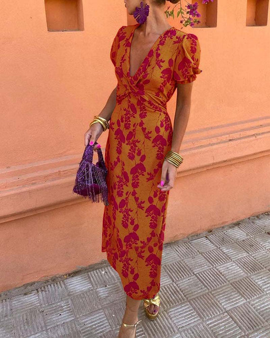 Abriella | Women's Midi Dress with Floral Print and V-Neck