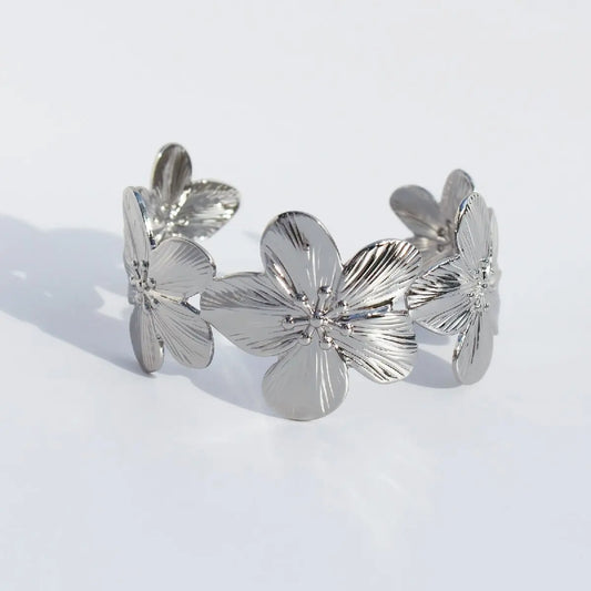 Waterproof women's bracelet made of stainless steel with elegant floral motif
