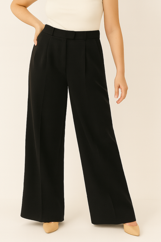 Wide pants for women - high waist - pleated front - fluid and elegant cut