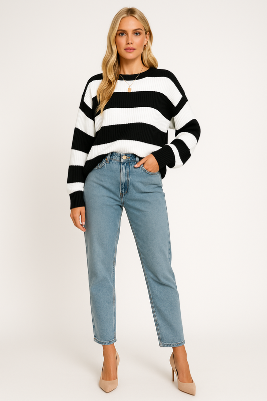 Women’s Cozy Oversized Striped Knit Sweater Pullover