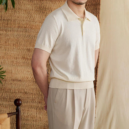 Classic Breathable Linen Polo Shirt Men