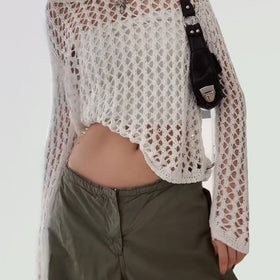 The Abriana Open Knit Sweater for women is the perfect addition to your summer wardrobe. With a modern design inspired by Y2K and a unique mesh lace pattern, this sweater elevates your style to a new level. The loose and casual fit, along with the long sleeves, offers both comfort and an elegant look, ideal for various occasions.