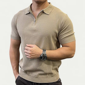 Adrian Knitted Polo Shirt with Zip Collar – Modern Men’s Smart Casual Beige