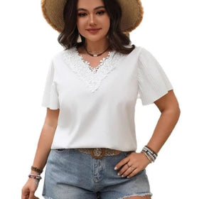 The Alessia blouse brings fresh charm to your everyday life. The delicate V-neckline with floral lace embellishment adds a romantic touch to the look, while the lightly pleated sleeves provide a modern touch. The flowing fabric offers comfortable wear and flatters the figure. Whether paired with shorts, jeans, or a skirt – Alessia is the perfect choice for stylish ease in summer.