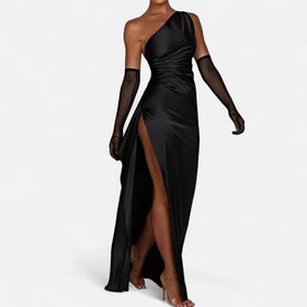 This asymmetrical dress embodies fluid sophistication. With its contemporary lines and subtle details, it asserts confident elegance for the woman who values refined simplicity.