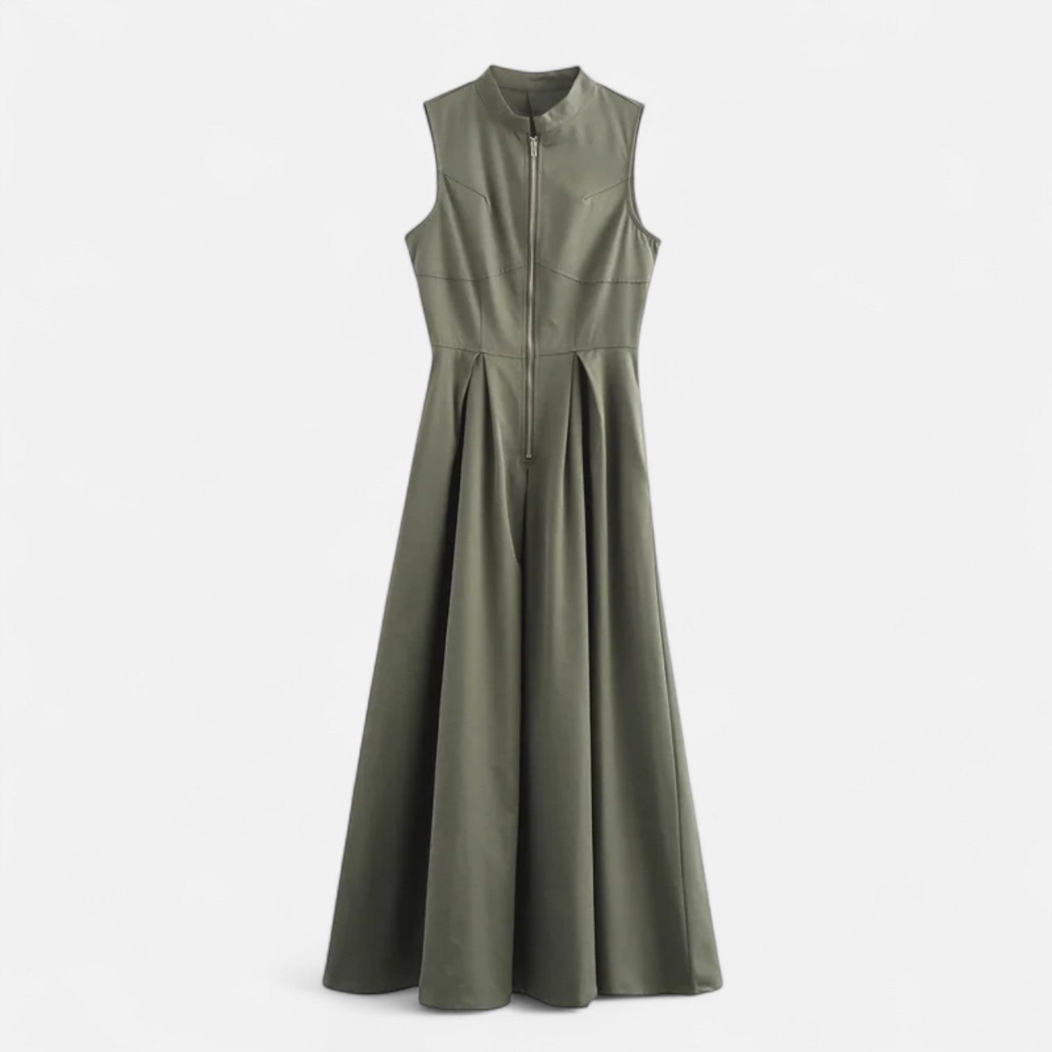 Ancient World | Fitted Pleated Midi Dress for Women – Sleeveless Summer Elegance with Zipper Closure
