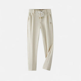 Made from premium corduroy, it offers incomparable softness and light warmth. The elastic waistband with drawstring ensures a perfect fit, while the signature emblem adds a subtle note of exclusivity.