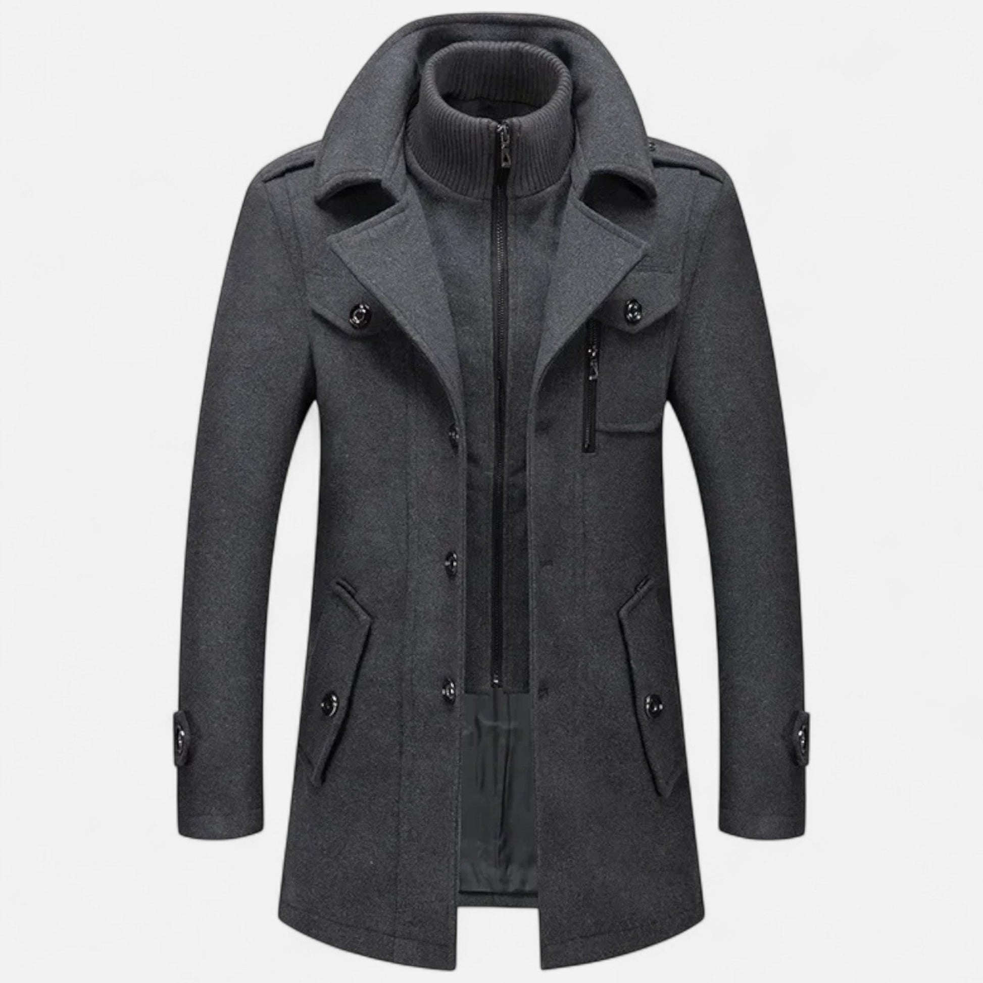 Ancient World | Men's Winter Coat in Mixed Wool with Double Collar