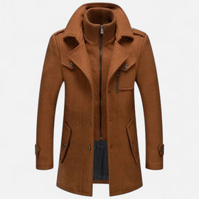 This blended wool coat embodies the perfect combination of classic style and modern functionality. Its double collar design adds a sophisticated touch while offering enhanced wind protection.