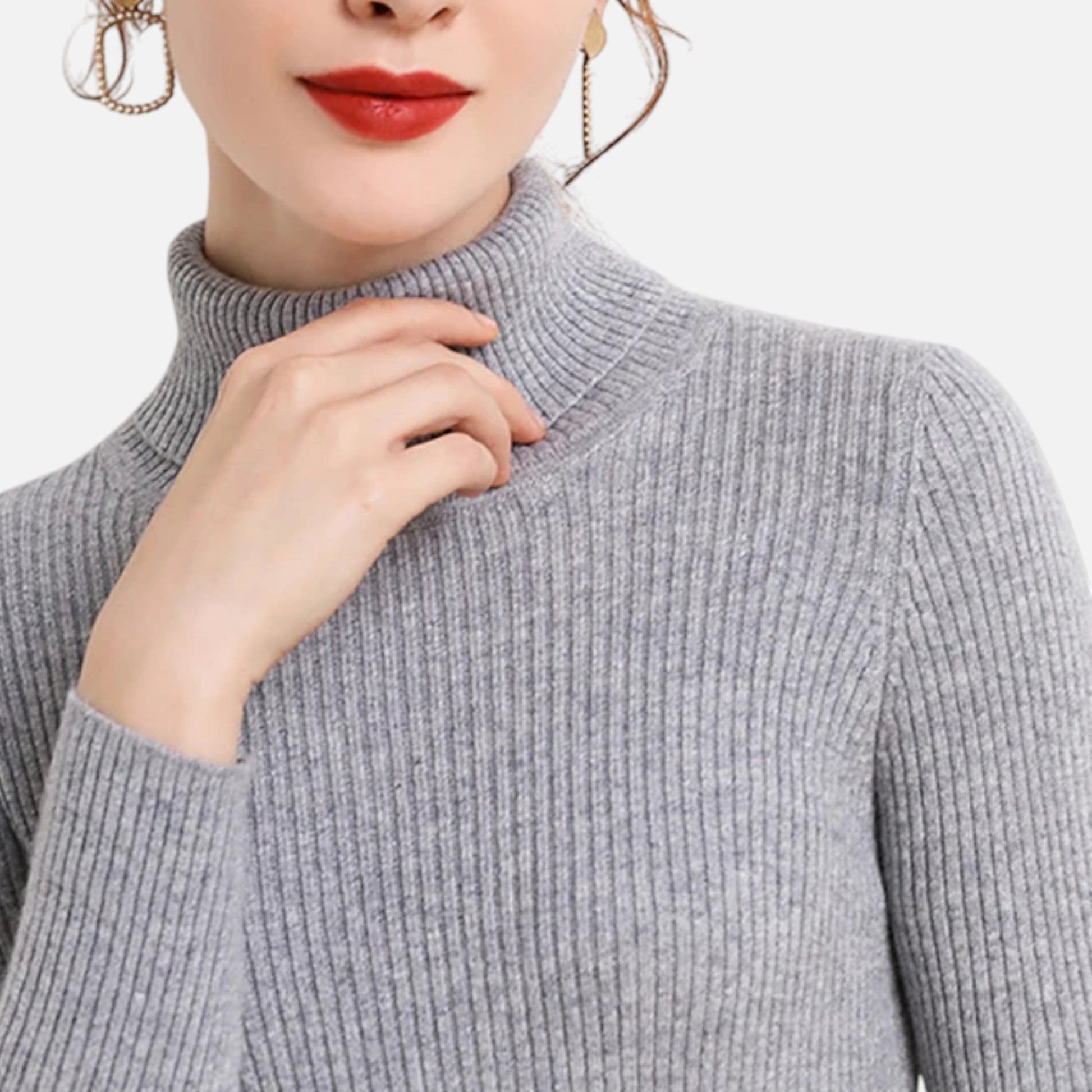 Designed for the woman who values quality and comfort without compromising on elegance, this knitted sweater offers warmth and flexibility. The turtleneck gently protects against the cold, while the flattering cut suits all body shapes, making this piece a must-have in the classic women's wardrobe.