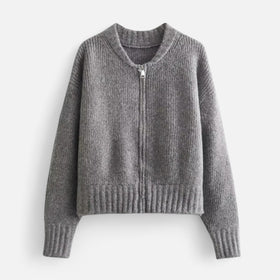 Ancient World | Women's Gray Knit Zip-up Elegant Coat