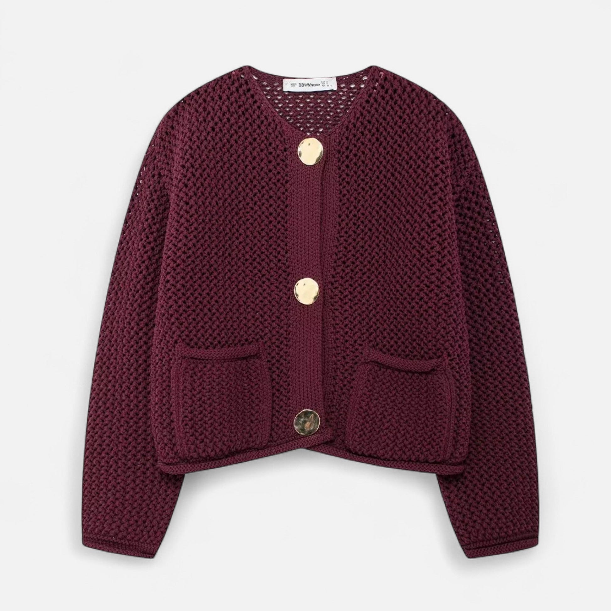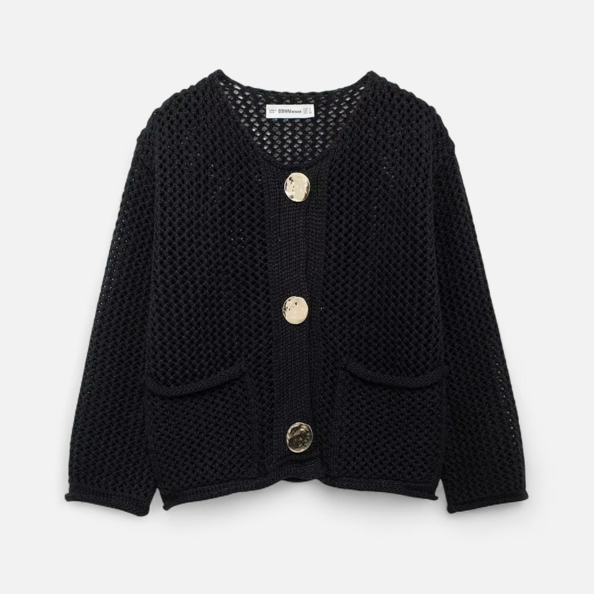 Designed for the woman who appreciates versatility and refined style, this knitted vest offers warmth and comfort while maintaining a sophisticated look. The soft and breathable material ensures a pleasant fit, making this cardigan a wardrobe essential for casual or more formal outfits.