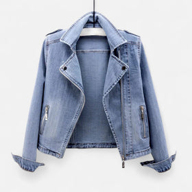 Made from premium denim, it ensures durability, softness, and everyday comfort. Its short and fitted cut enhances the silhouette, offering a look that is both chic and casual, ideal for all seasons.