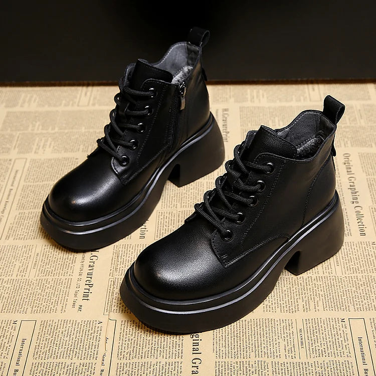 Step out in style with these genuine leather Mary Jane wedge pumps. Featuring a 7.5cm round heel and cushioned insole, they combine classic elegance with all-day comfort for spring and autumn casual wear.