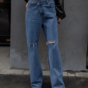 Discover the perfect combination of timeless charm and modern design with these asymmetrical vintage jeans for women. The low waist and striking design add a personal touch to your look and make these jeans the ideal companion for any occasion.
