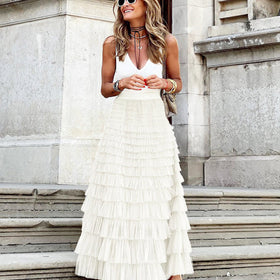 - Versatile maxi tulle skirt with layered design