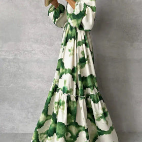 This elegant green maxi dress with long sleeves and a V-neck combines sophistication and comfort in a timeless design. The flowing silhouette and deep V-neck make it the ideal choice for various occasions, from garden parties to festive evening events. Crafted with great attention to detail, this dress offers a flattering fit that highlights your natural grace and gives you a confident appearance.