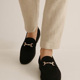 Refined and versatile, the Benjamin Suede Loafers with gold buckle bring understated sophistication to modern menswear. Crafted from soft suede-effect material, these loafers deliver both comfort and polished style, making them ideal for formal occasions, office attire, or elevated casual looks. The slim silhouette and gleaming metal detail create a timeless statement, while the lightweight construction ensures ease of wear all day. Designed for gentlemen who appreciate effortless elegance, these loafers pair seamlessly with tailored trousers, chinos, or smart denim.
