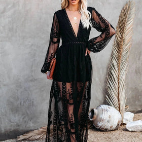 This long black dress embodies the bohemian spirit with its delicate embroidery and fluid cut. The long sleeves provide comfort and lightness, while the silhouette is subtly enhanced. An elegant and versatile piece for all your occasions.