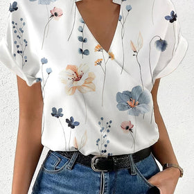 Opt for freshness, naturalness, and feminine charm with this summer blouse featuring a floral print and V-neckline. Created for women in Spain who want to look stylish without sacrificing comfort. Its airy fabric and colorful print make it an indispensable element of summer outfits with a touch of nonchalant elegance.