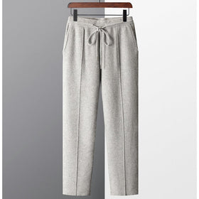 Calvin Relaxed Drawstring Wool Trousers for Men Light Gray