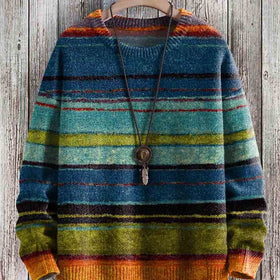 Casual knitted sweater with vintage striped print
