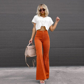 Experience luxurious comfort and stylish elegance with the Catrina Pants. These flared ribbed velvet pants combine timeless chic with a modern, comfortable cut – perfect for any occasion.