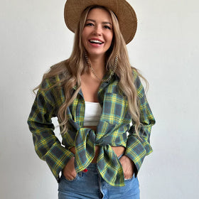 Whether as a casual leisure outfit or as a fashionable statement piece – the Celena Flannel Shirt pairs well with jeans, leggings, or skirts and adds a touch of timeless sophistication to any look.