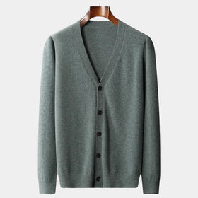 Charles Men’s Merino Wool Cardigan – Luxury Knitwear with Classic Button Design Army Green