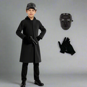 Become the mysterious leader of the guards with this Halloween Cosplay Costume Front Man - the perfect children's game Halloween costume for kids and adults. Ideal for cosplay events, themed parties, and Halloween black polyester children's hunter costumes that will make you stand out as the ultimate character. Whether attending a game-themed event, a Halloween celebration, or a costume party, this children's game suit is designed to impress with its sleek and iconic style.