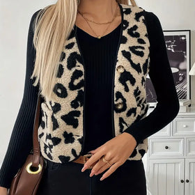 The elegant leopard print vest with V-neckline for women combines bold fashion with timeless style. With its striking design and flattering V-neckline, it adds a touch of sophistication to any outfit. The lightweight, breathable material ensures comfort, making it the ideal choice for casual as well as semi-formal occasions. Whether worn over a blouse or on its own, this vest brings a chic, wild flair to your wardrobe.