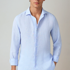 This elegant shirt combines the breathable qualities of linen with a soft, fresh light blue shade – perfect for men seeking a stylish and comfortable piece for both casual and semi-formal occasions.