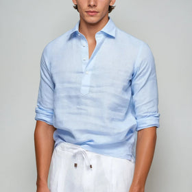 The men's pop-over shirt made of lightweight linen in light blue combines refined elegance with exceptional comfort. Made from airy linen quality, this shirt offers a breathable experience ideal for warm days.