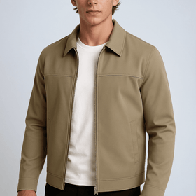 Featuring a muted khaki tone, a classic collar, and a clean zip-up front, this jacket offers a smart yet relaxed look. The soft, checked inner lining adds comfort and understated elegance. An ideal piece for unpredictable weather and a wardrobe essential for every man.