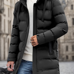 This classic, padded men's winter jacket offers optimal cold protection and maximum comfort on cold days. With its thick filling and practical hood, it effectively shields against wind and cold, while the timeless design is versatile.
