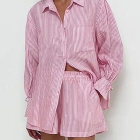 Discover the perfect cotton set that combines comfort and fashionable design. This set consists of a loose long-sleeve shirt and matching shorts, ideal for relaxed days or stylish looks at home.