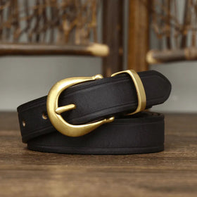 This stylish belt made of high-quality full-grain leather combines functionality with timeless design. The curved brass buckle and sleek silhouette make it the perfect accessory for both casual and formal outfits.