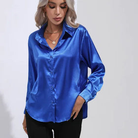 Elegant Buttoned Blouse For Women | Long Sleeves Relaxed Fit