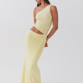 The elegant maxi dress combines soft materials with structured elegance, offering a beautiful silhouette for women who exude confidence. With its asymmetrical neckline and refined draping, this dress unites timeless beauty with a modern touch, ideal for weddings, formal evenings, or special events.