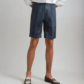 The elegant navy shorts offer a perfect combination of timeless elegance and comfort. With subtle pleats and a refined silhouette, these shorts exude sophistication, and the deep blue shade provides versatility for various occasions.