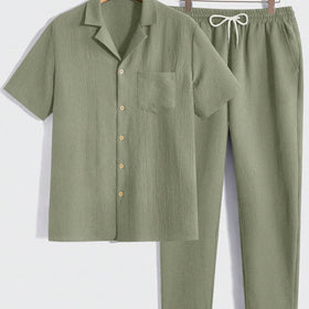 - Complete two-piece set: Includes a short sleeve shirt and long pants for a refined silhouette.