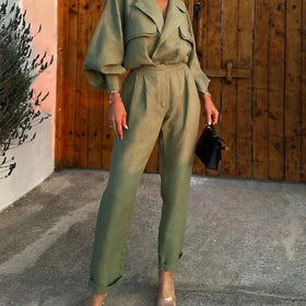 Discover the stylish Quennie set, perfectly combining elegance and ease. This set consists of an elegant top and matching pants, ideal for various occasions, whether for relaxed days at home or special events.