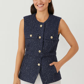 Elegant bouclé vest with gold buttons for stylish outfits