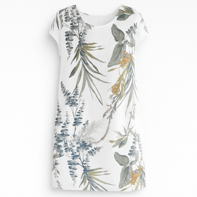 The dress Mrs. Elisabeth combines the comfort of natural fabrics with timeless style. Made from a lightweight blend of cotton and linen, it offers breathability and comfort throughout the day. The delicate print adds a subtle touch of charm, while the classic round neckline makes it suitable for all body shapes. It is the perfect choice for summer days when you want to be stylish and feel comfortable.