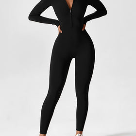 Start the fall season in style with this modern jumpsuit featuring a stand collar and zipper, combining comfort with a current design. The high collar and front zipper make this jumpsuit the perfect choice for an elegant, svelte silhouette. The tailored fit ensures that you always look chic, whether you have a relaxed day or an elegant evening plan. This versatility makes it an ideal addition to your fall wardrobe.