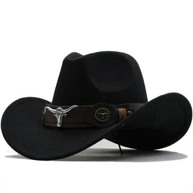 Western Style Felt Hat with Bison Buckle Strap