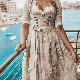 The dirndl from Eloura-Moda is a true masterpiece of classic style and contemporary elegance. With delicate lace, an elegantly designed apron, and a beautifully shaped bodice, this dirndl highlights your natural beauty and gives you a stylish and elegant appearance. The matching blouse completes the ensemble and makes it the perfect choice for festive occasions and traditional celebrations.