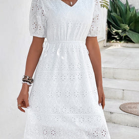The Amélie dress combines classic beauty and delicate embroidery to create a refined and feminine look. Its airy cut and short sleeves make it perfect for warm days, while the elegant details give it a luxurious touch. An elegant choice for both everyday wear and festive occasions.